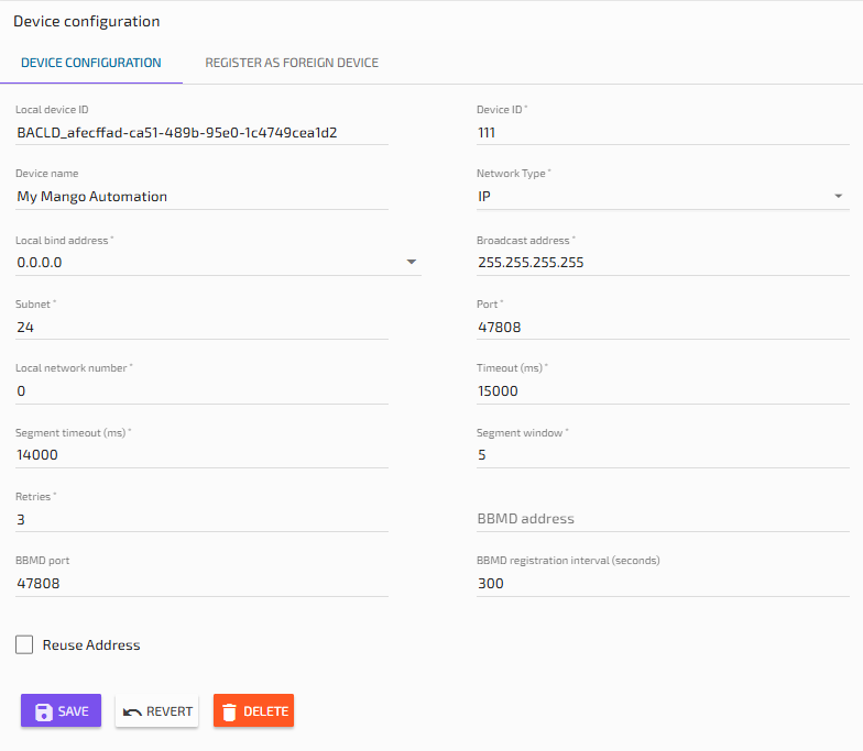 BACnet/IP Local Device: Select the Local Device you configured