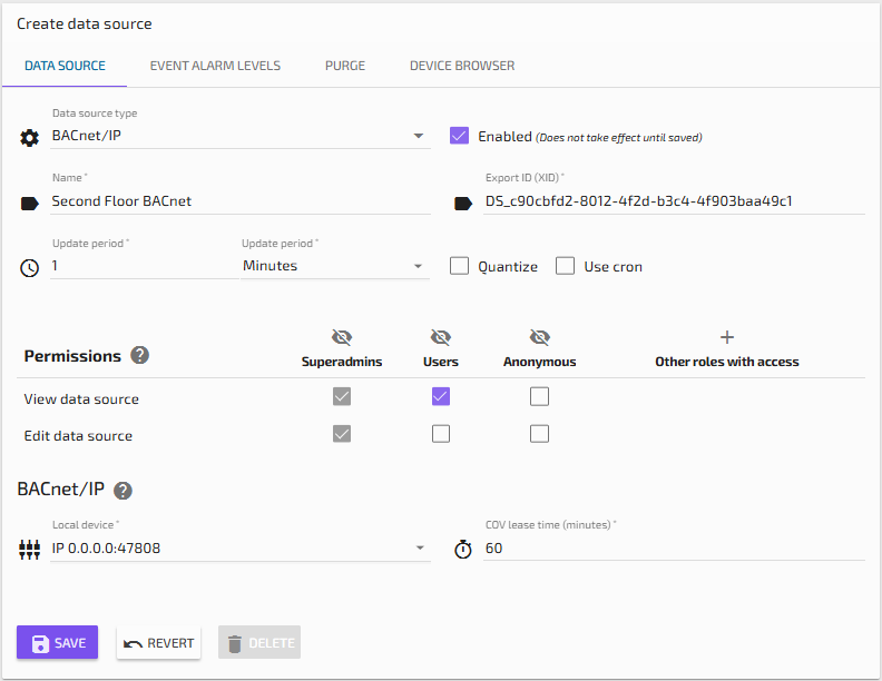 Data Source Type: BACnet/IP
