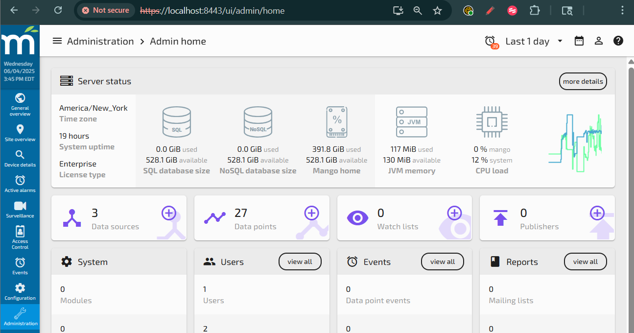 docker run -d --name mango -p 8080:8080 -p 8443:8443 -p 9090:9090 --restart unless-stopped ghcr.io/radixiot/mango:latest